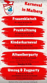 Der Vorverkauf findet am 4. Januar 2026 von 17:30 – 18:30 Uhr im Bürgerhaus Malberg statt!